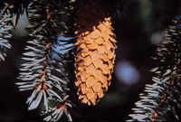 * Picea glauca - Ak ladin. Kuzey Amerika'nın kuzeyi.
